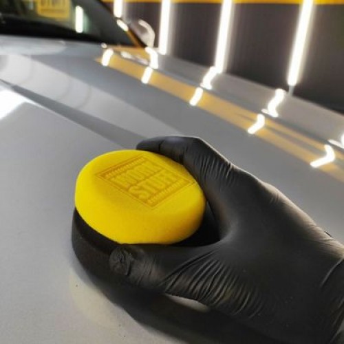 Аппликтор для нанесения воска, состоящий из поролона двух разных плотностей. Благодаря этому, его удобнее держать в руках и повышается эффективность работы.